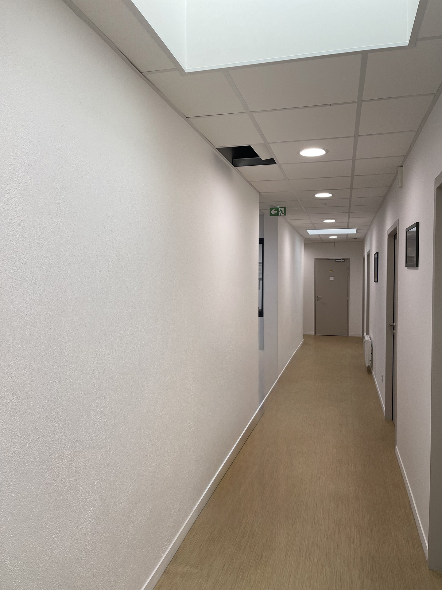 Cette intervention visait à remettre en conformité les locaux impactés, notamment en corrigeant des non-conformités acoustiques entre les différents espaces, afin d’assurer un environnement fonctionnel et confortable pour les professionnels de santé et les usagers.